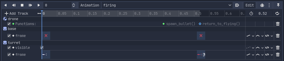 There’s a collision shape of course. And there are two sprites, one for the base of the drone and one for the turret. This allows the turret to rotate independently of the body.
