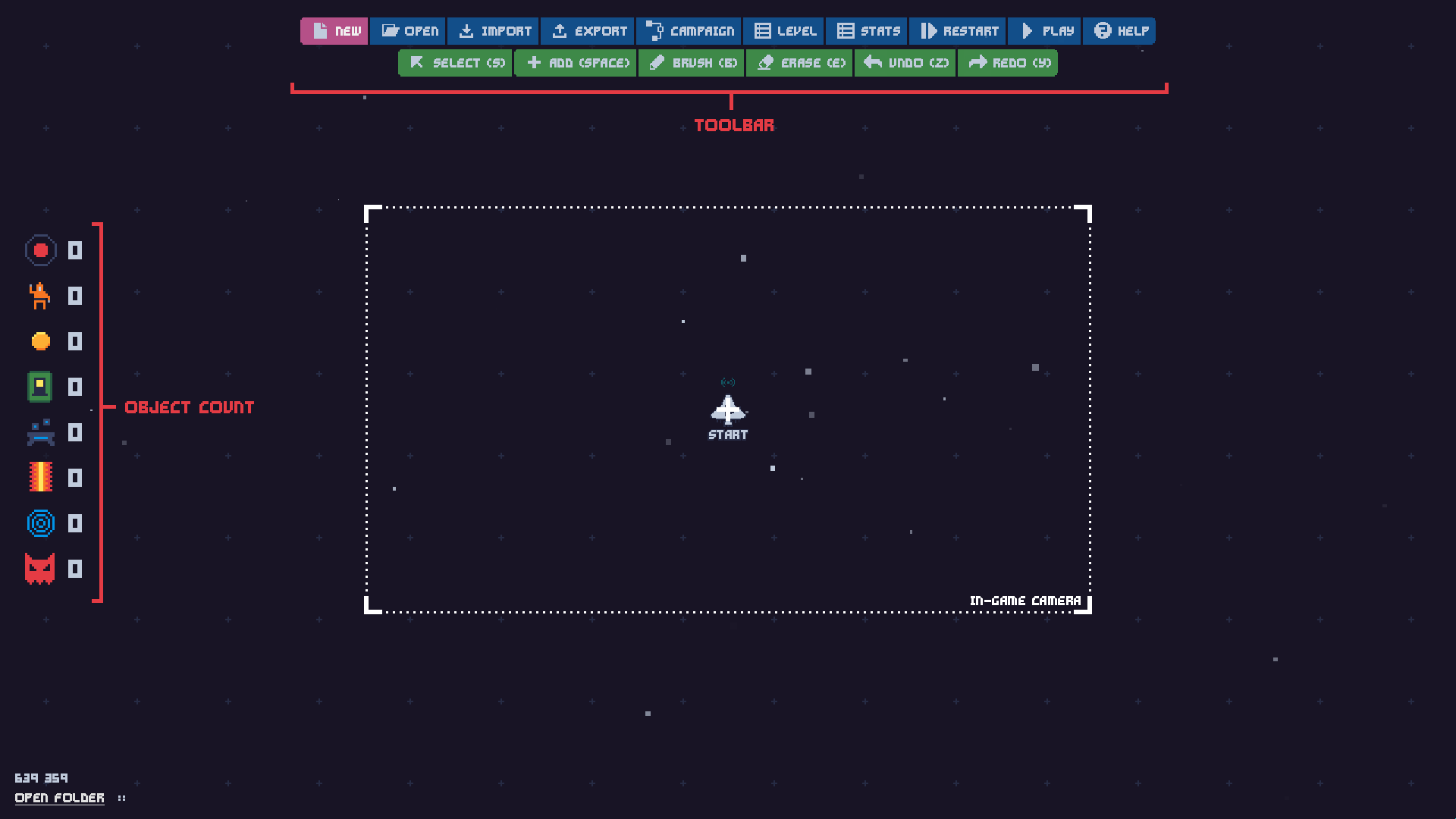 The level editor allows you to modify and build your very own levels for Gravity Ace. It is the exact same tool that was used to design all of the levels that came with the game.